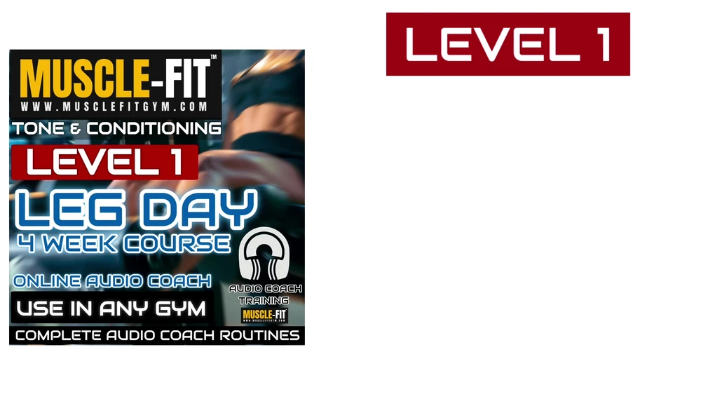 Watch The Video Above For a Breakdown Of How It Works This is a dedicated level 1 leg day Workout that you can can use anytime that you go to the gym. Level 1 is a foundation based course that looks at establishing a solid leg day routine from the ground up. The workout can be added to a routine you already have, an add on visit to the gym after a workout class, or you can use its own as a bite sized approach to implementing a structured workout routine. The exercises you will go through with this routine are; •Leg Press •Leg Extension •Leg Curl •Reverse Lunges •Body Weight Squats Utilising the Muscle Fit Audio Coach, you will begin by establishing your training weights, get familiar with the workout hub and begin to look at the techniques required and how it all works. You will then conduct weekly sessions which involves weekly challenges, targets to meet and a chance to make improvements in your performance. Over the next 4 weeks you can expect to; •Develop & improve Function strength •Improve Muscular performance •Establish a progressive structured approach to training •Help develop consistency •Improve visible tone and condition •Have audio coach support with you during every session.